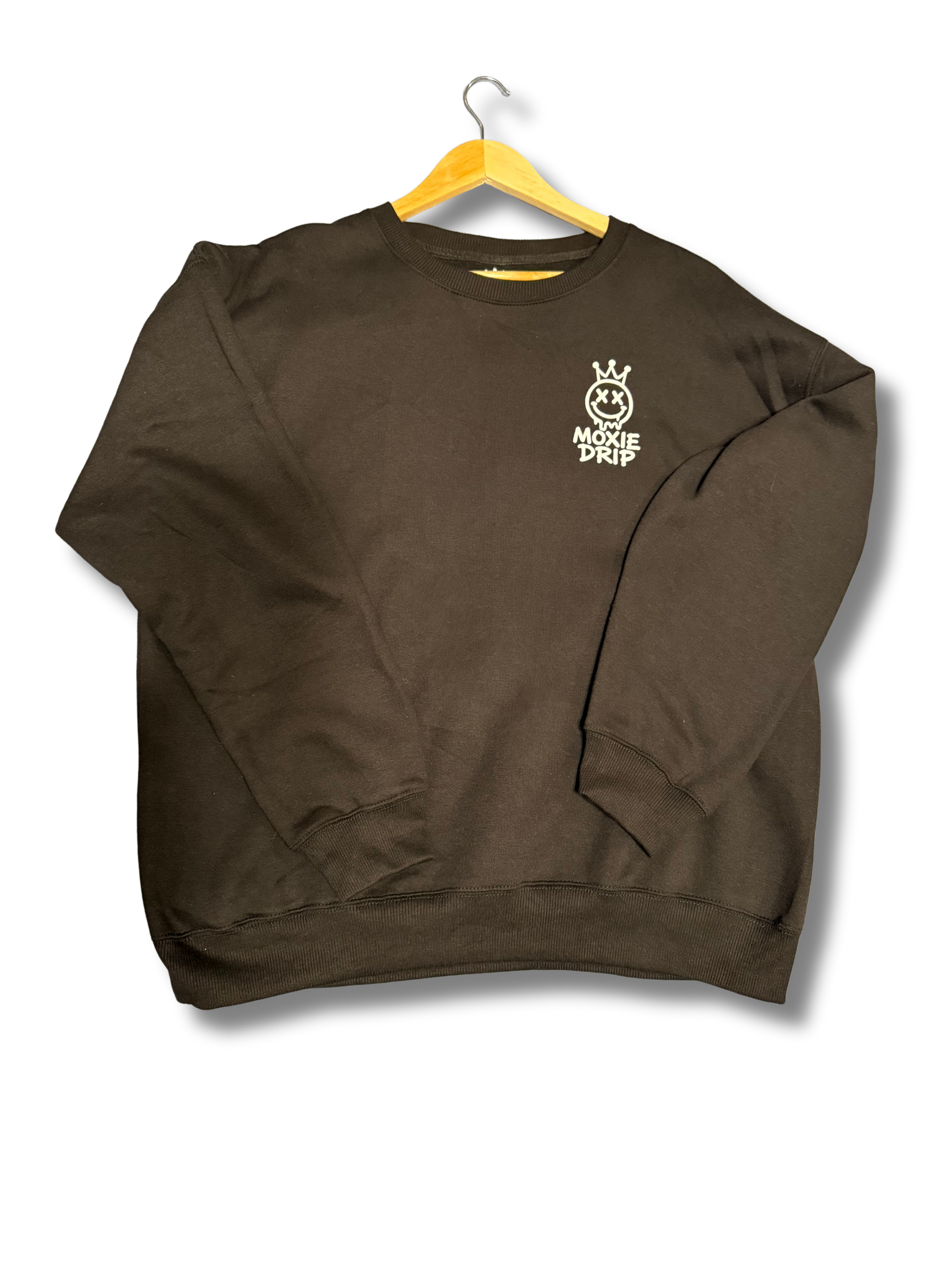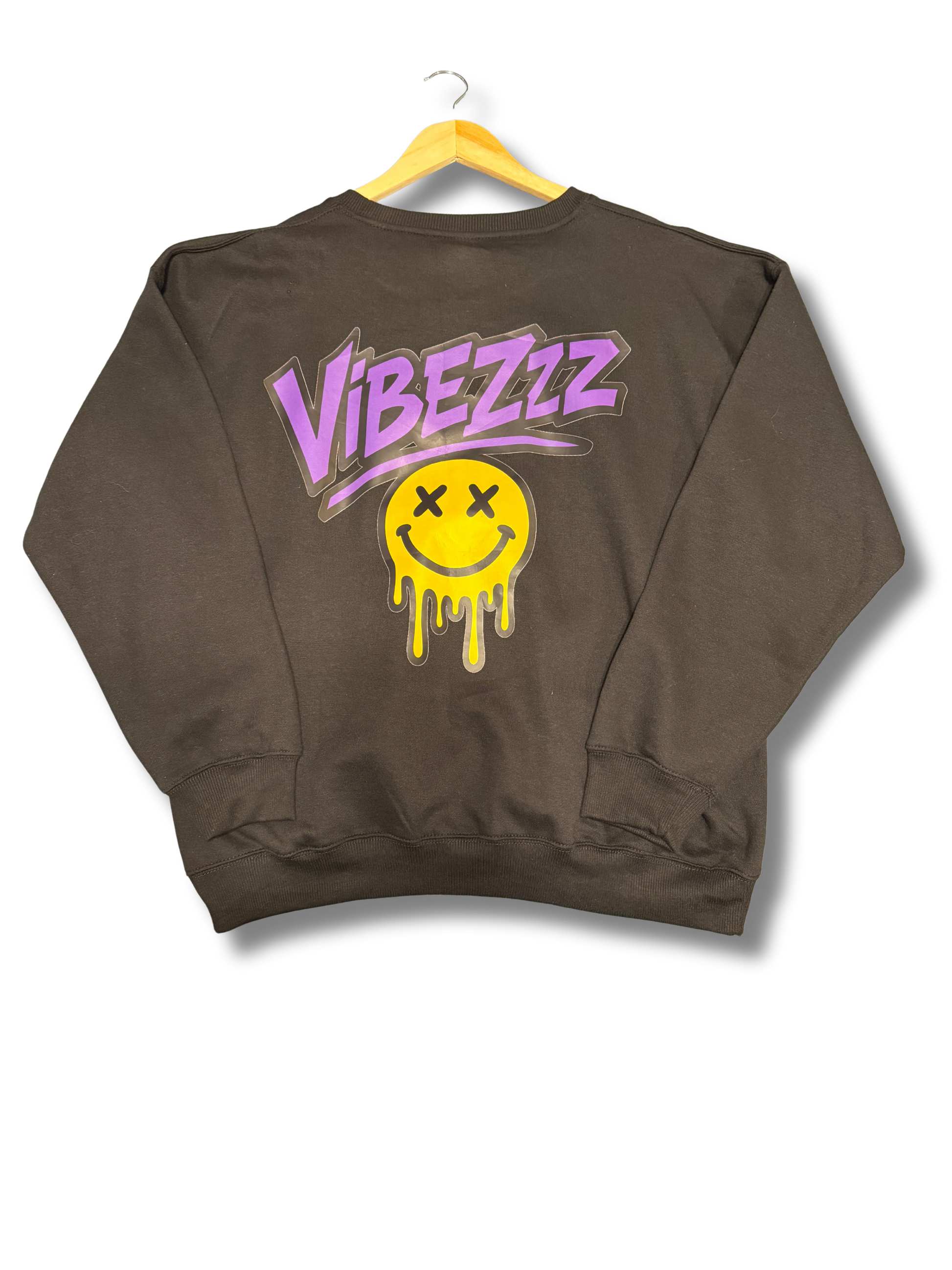 This sweater commands attention with its bold comic-style Vibezzz logo on the back, featuring an edgy smiley face with XD eyes and dripping details. The front sports the sleek Moxie Drip logo on the upper chest, combining street-ready attitude with unmistakable style. Perfect for those who dare to stand out.